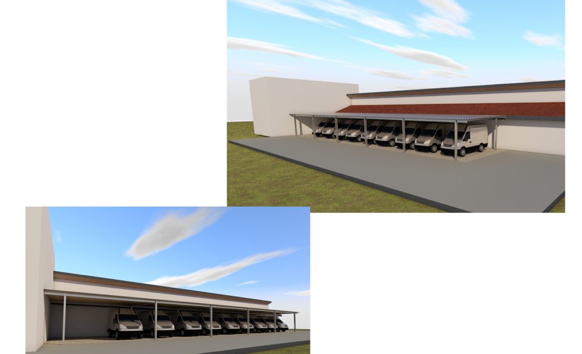 Construirea unei copertine metalice care să ofere protecție ambulanțelor și echipajelor în timpul pregătirii pentru intervenție.